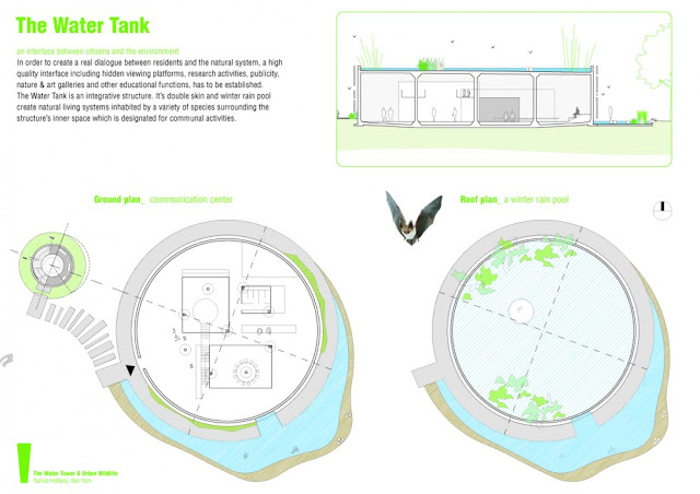 “Torres de Agua – Nuevas Perspectivas” es el nombre del concurso que se llevó a cabo entre agosto y diciembre del 2010, organizado por la Academia Bezalel de Arte y Diseño, en Jerusalén, la Universidad de Berkeley y la Sociedad para la Preservación del Patrimonio de la Humanidad de Israel (SPIHS). Cientos de torres de agua fueron construidas en diferentes épocas y estilos a través de Israel, muchas de las cuales ahora están secas y abandonadas. Lo que solía ser un signo de vitalidad es ahora un inútil recuerdo de hormigón, que contienen antenas o carteles publicitarios. Muy pocos municipios han dado cuenta del valor histórico y cultural de las torres de agua y la posible renovación de su estructura.